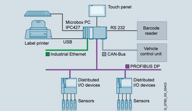 Various bus systems must be linked in plant 3. Also a customer-specific Windows application is to be used on the selected systems and therefore the connection to a higher-level MES system has to be implemented.